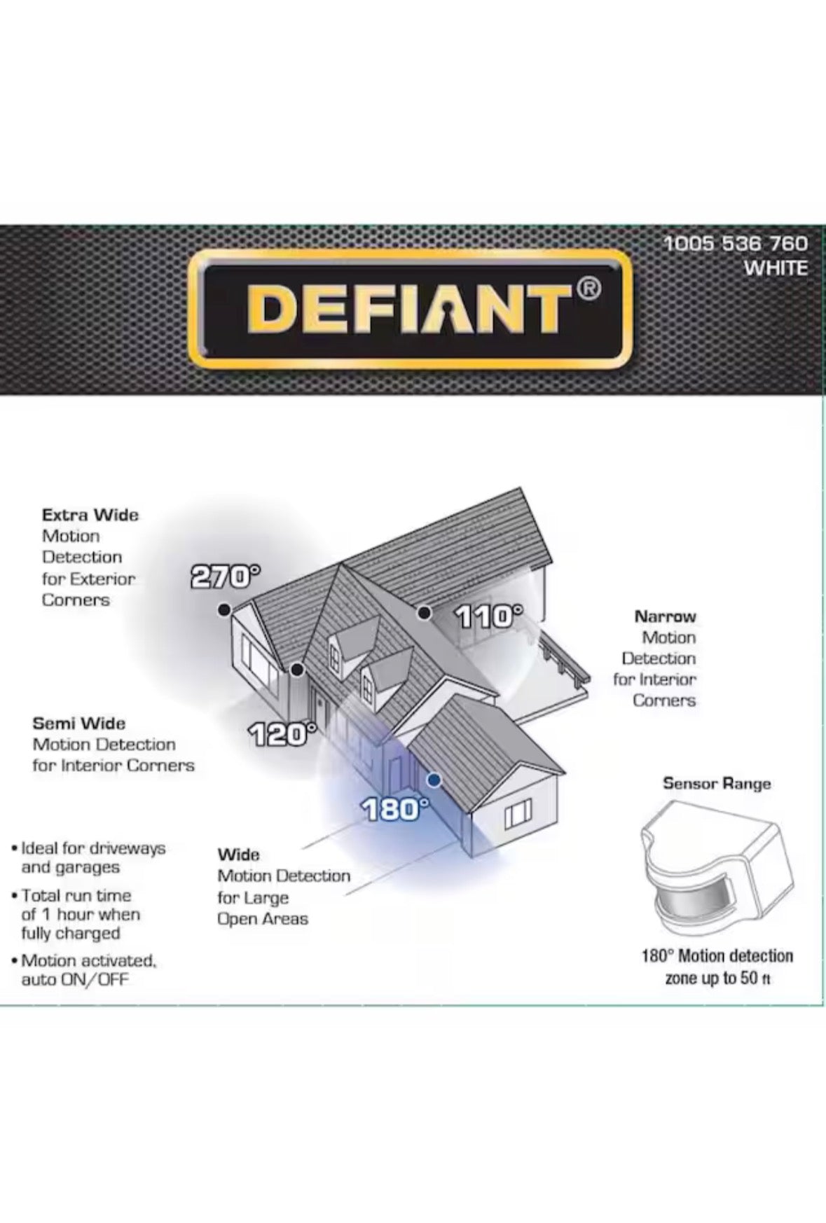 1000 Lumens 180° White Solar Powered Motion Activated Outdoor Integrated LED Flood Light